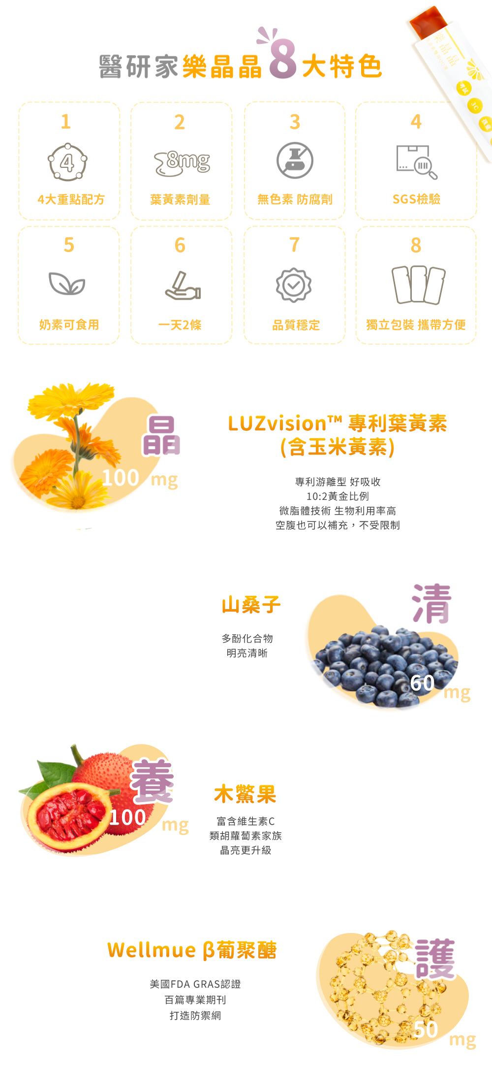 ✔LUZvision™專利葉黃素(含玉米黃素),專利游離型好吸收